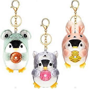 SBSG 3 Pcs Stuffed Penguin Keychain Cute Plush Keychain Frog Bunny Dog Cosplay Costume Stuffed Animal Keychain Penguin Plush Pendant for Backpack Deco