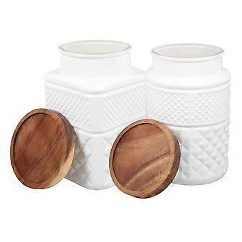 Sealed Storage Jar with Wood Lid for Home in White Material 2 Pieces