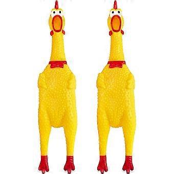 ZENGO 2 Pcs Large Rubber Chicken,Screaming Chicken Dog Toys,Yellow Rubber Squawking Chicken,Prank Noise Maker Dog Toys 12 Inch