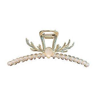 Shiny Rhinestones Faux Pearls Imitation Opal Hair Claw Antler Fishtail Shape Bath Hair Pin Hair Accessories