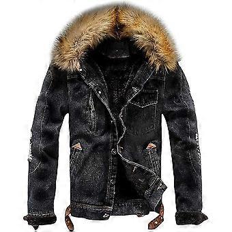 Men's Faux Fur Collar Sherpa Jacket Fleece Lined Denim Coat