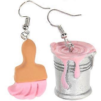 Pink Paint Brush Earrings Asymmetrical Earrings for Decoration 4Pairs