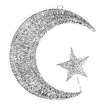 Star Moon Pendant Hanging Decor Christmas Ornament Home Decoration Silver 35CM Iron Wire Yarn 1Pack