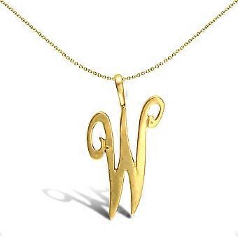 Jewelco London Solid 9ct Yellow Gold Script Identity Initial Pendant Letter W