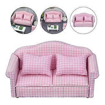 Dollhouse Miniature Sofa 1 Set Decorative Indoor Play Furniture Model With Pillow Pink Color