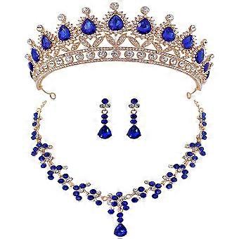 Silver Bridal Rhinestones Crown Necklace Jewelry Set for Women 4Sets
