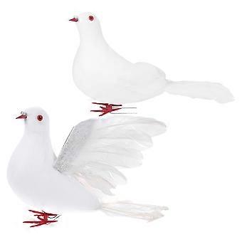 Artificial White Foam Doves Birds for Decor 3Pcs Feathered Pigeon Set