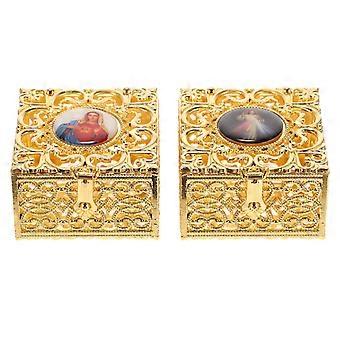 Jewelry Case Box Zinc Alloy Jewelry Container for Storage 2Pcs Golden