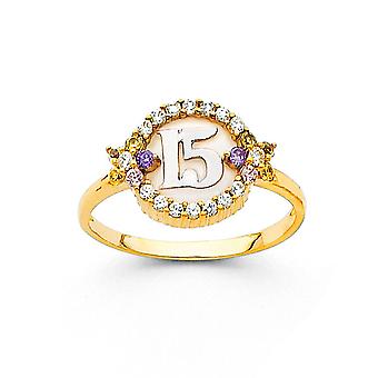 14k Yellow Gold Semanario Cubic Zirconia Ring Size 7-Ring for Women - 2.8 Grams