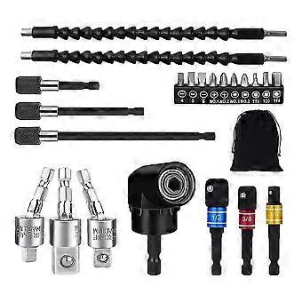 Drill Bit Extension Set,105 Right Angle Drill,1/4 3/8 1/2 Inch Hex Rotatable Socket, Bendable Dril