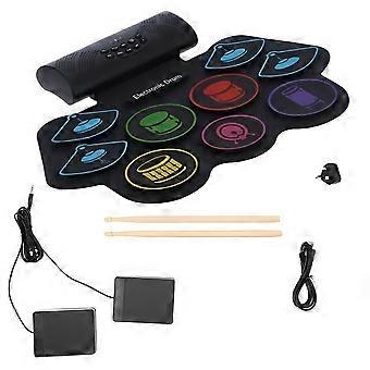 Electronic Drums Silicone Drum Set Hand Roll Drum Set Dual Built-in Speakers Battery Powered Drums EU Plug