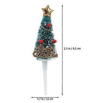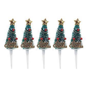 Christmas Tree Topper Cake Decoration Green with Snow for Birthday Party Food Picks 5Pcs