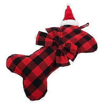 Pet Dog Christmas Stockings, Plaid Bone Shape Pets Stockings, Cat Paw