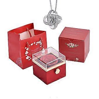 Eternal Natural Rose Box with Necklace Engraving and Rose, Customized Necklace for Girlfriend