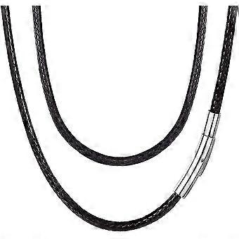 black leather necklace cord for men women. 3mm wax rope chain with magnet