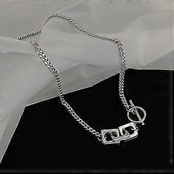 2 pieces of hip-hop hollow square brand couple necklace ins titanium steel ot buckle necklace men and women do not fade sweater chain splicing chain b