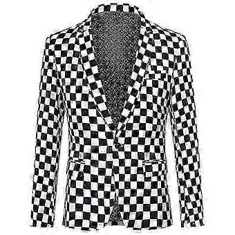 2025 Men's Slim Fit Blazer Black and White Checkered Single Button for Formal Occasions