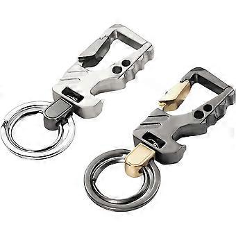 2PCS Stainless Steel Key Chain-Brown & Black- with Leather Heavy Duty