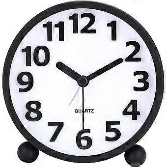 Silent Analog Alarm Clock, Black Metal with Large 3D Digits, Snooze Function, Night Light, Non-Ticking Table Clock, Bedside Alarm Clock, 10.5cm