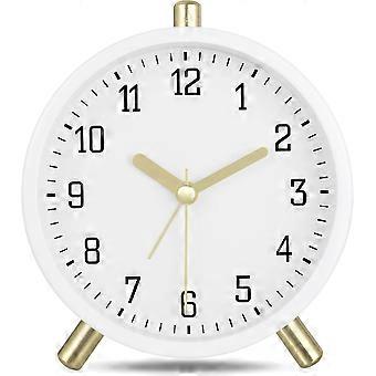 Silent Analog Metal Alarm Clock with Night Light, Modern Classic White, Simple Table Clock for Bedroom or Bedside, 11cm