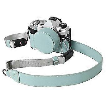 Leather Camera Case Half Body Cover with Lens Cap and Shoulder Strap for Olympus Compatible Cameras - Baby Blue