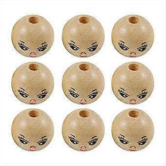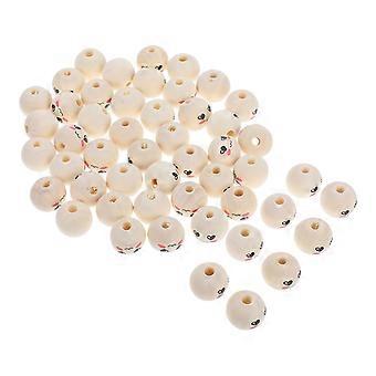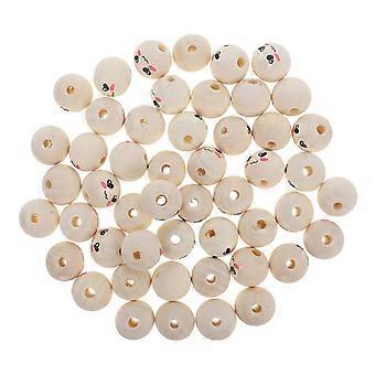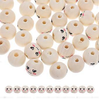 Wooden Smile Face Beads for Children's Crafts Painted Beads DIY 50Pcs