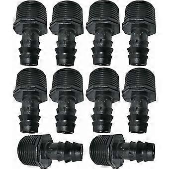 Set of 10 Male Barbed Adapters/Connectors 16mmx3/4'' Drip Hose External Thread (for 16mm Hose) - Connector for Irrigation/Sprinkler System