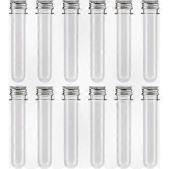Set of 12 Clear Plastic 40ml Test Tubes with Screw Caps for Lab Use