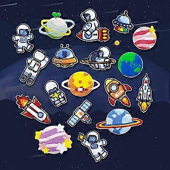 Set of 18 Computer Embroidered Planet Cartoon Astronaut Embroidery Fabric Sticker DIY Bag Decorative Clothes Patch Poster