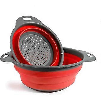 Set of 2 Collapsible Kitchen Colander Non-Toxic Easy to Clean, 2 Sizes Red