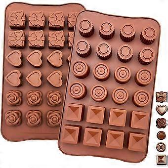 Set of 2 Silicone Food Pastry Molds - 24 Cavities - Non-Stick, Easy to Clean - For Chocolate, Candy, Ice Cubes, Jelly, Cake