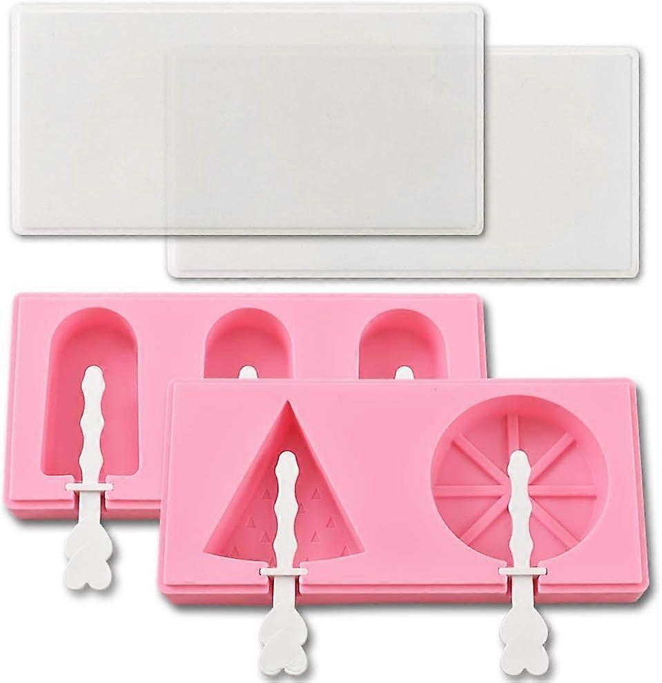 Set of 2 Silicone Popsicle Molds with Lid and Sticks, Classic Shape, Watermelon, Orange
