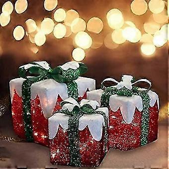 Set of 3 LED gift boxes with Green Bow Christmas gift boxes, party decorations