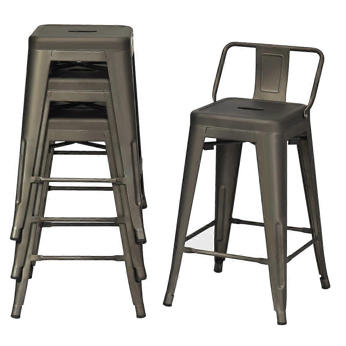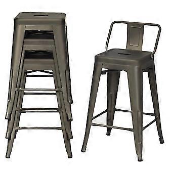 Set med 4 stapelbara matstolar i metall med avtagbart ryggstöd och 60 cm sitthöjd