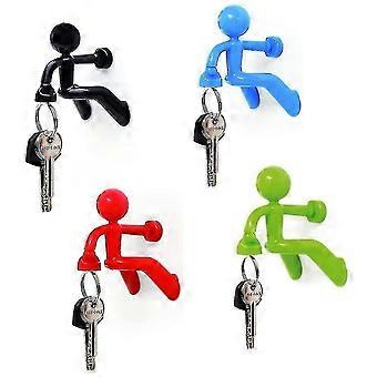 Set Of 4 Strong Magnetic Key Holder Hooks With Wall Climbing Man Design | Random