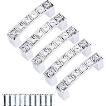 Set of 5 Rhinestone and Crystal Glass Drawer Pulls from Chez - For Dresser, Kitchen Cabinet, Cupboard