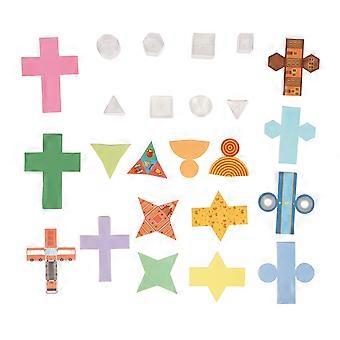 Set of 8 Clear Geometric Templates with Folding Paper Sheets, Educational 3D Shapes, Clear Geometric Templates with Removable Covers
