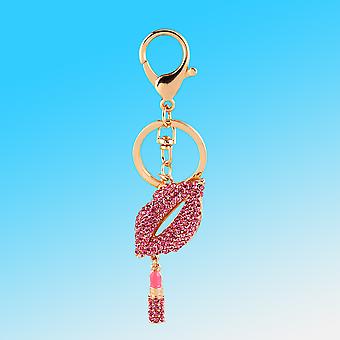 Sexy Lipstick Keychain with Rhinestone and Handbag Charm
