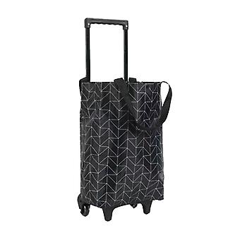 Shopping Cart Foldable Portable Grocery Cart Oxford Fabric Shopping Trolley with Wheels Extendable Handle for Travel Black Line
