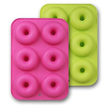Silicone Donut Molds, 2-pack Of Non-stick Food Grade Silicone Pans For Donut Baking Green And Rose