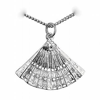 Silver 23x30mm Hand Fan Pendant with a curb Chain 24 inches