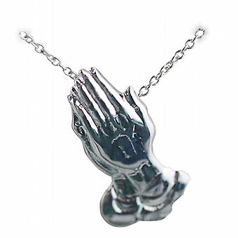 Silver 25x13mm Praying Hands Pendant with a rolo Chain 24 inches