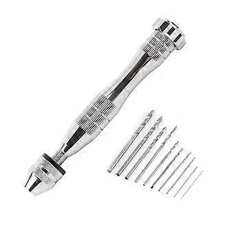 Silver Color Wide Grasp Range Chuck Hand Twist Drill With 10 HHS Drill Bits Wood Drilling Tool
