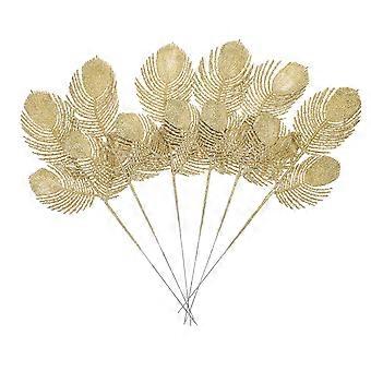 Simulation Leaf Ornaments 6Pcs Christmas Celebration Decorative Ornaments Golden Pe Artificial Decorations for Scene Layout