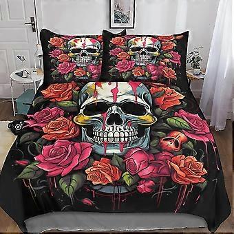 Skull Floral Duvet Cover Set, 3D Printed 3 Pieces Soft Microfiber Bedding Set for Teens and Adults