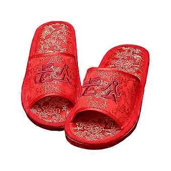 Slippers Linen Material for Wedding Use 1Pair Non-Skid Red Slippers