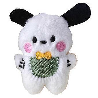 Soft Plush Dog Pendant Adorable Stuffed Animal Hanging Decor with Green Bib for Keys Bags