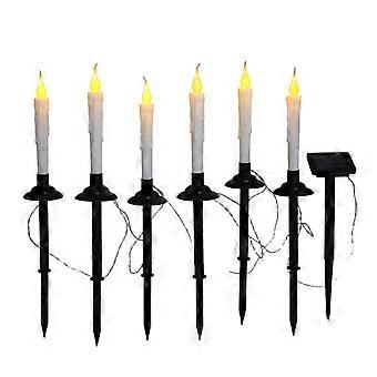 Solar Powered Outdoor, 6pcs Taper Led Rechargeable Operated For Window Outdoor Yard Lamp
