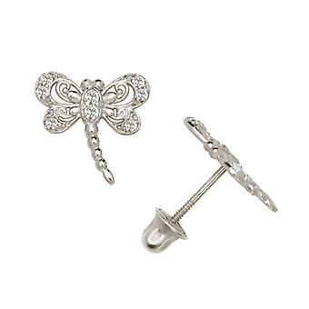 Solid 14k Yellow or White Gold Small Round CZ Dragonfly Stud Screw Back Earrings (10x8mm)-Stud Earring for Women
