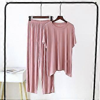 Spring and summer new ladies pajamas short sleeves + trousers two-piece modal thin loose large size solid color homewear suit